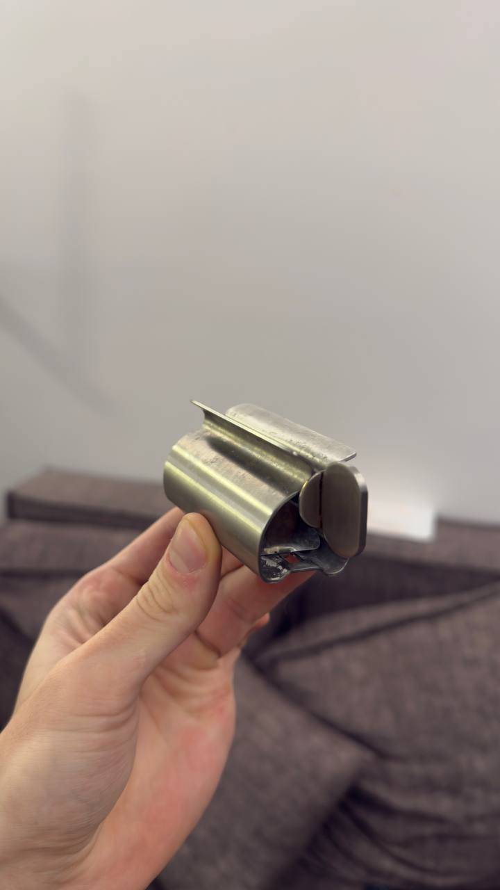 Металлический выжиматель для тюбиков пасты или крема, позволяет выдавить содержимое до конца, экономит расход.
