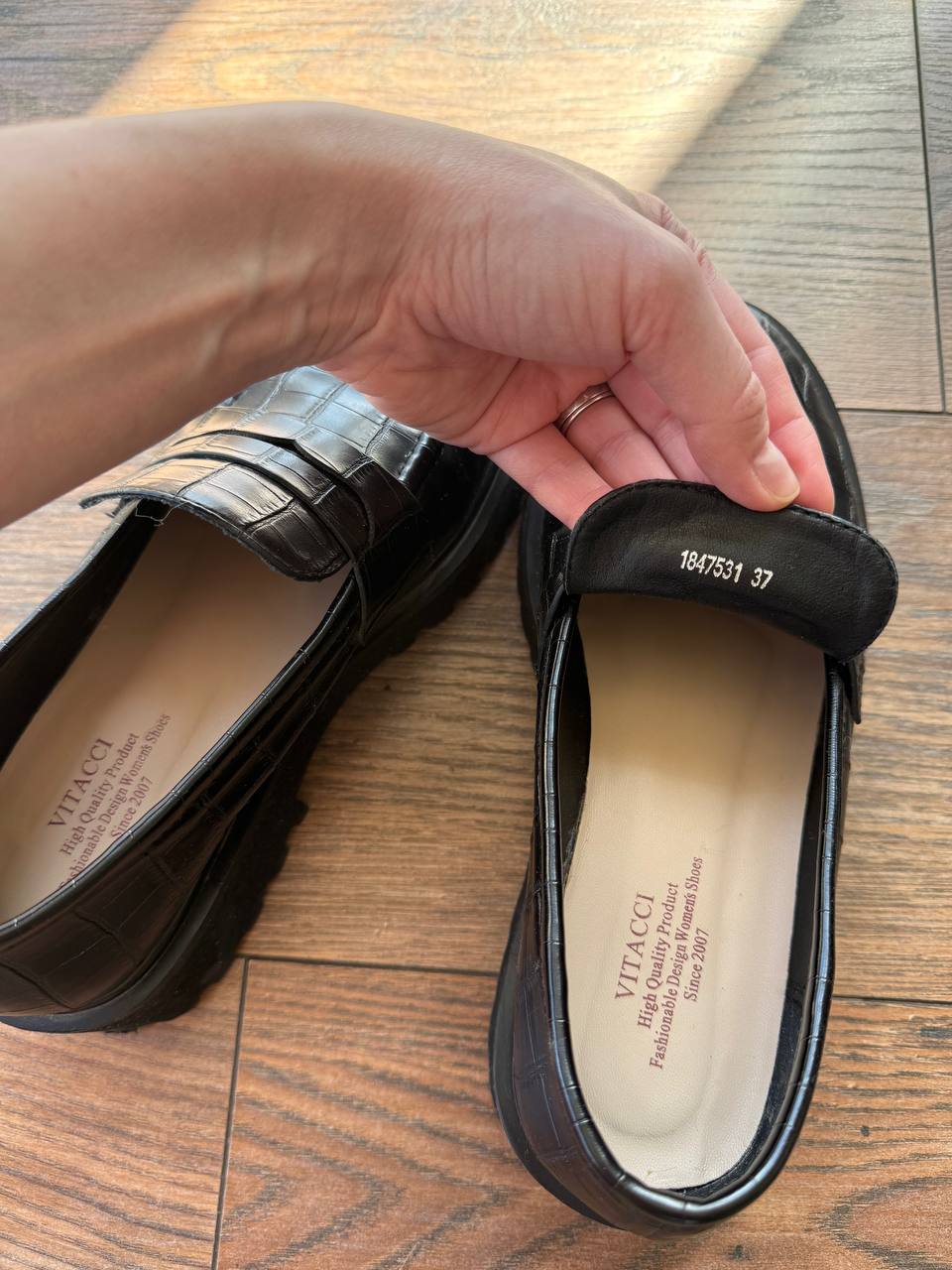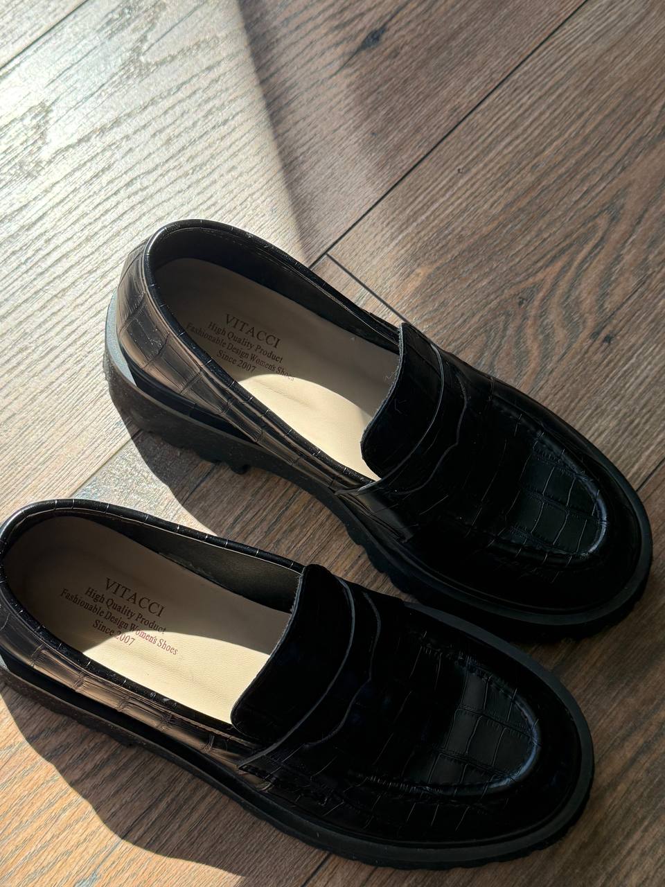 Женские лоферы Vitacci 37 размера, состояние новых (надевала дважды). Верх - экокожа, стелька - натуральная. Удобная колодка, не узкие.